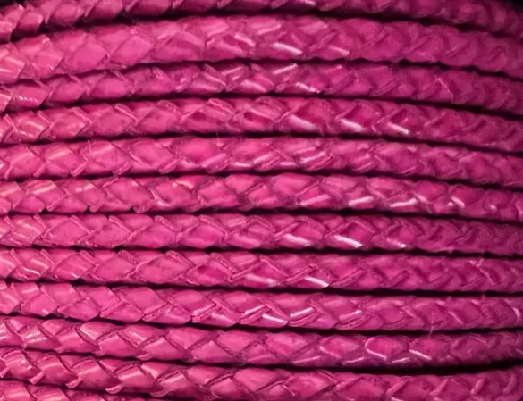 Cuir tressé rond 3-Qualité Joaillerie-nouvelles couleurs - Fuchsia