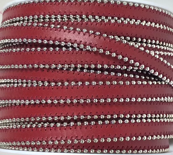 Cuir satiné ou non avec chaîne boule 10 mm-NOUVELLES COULEURS - Rouge