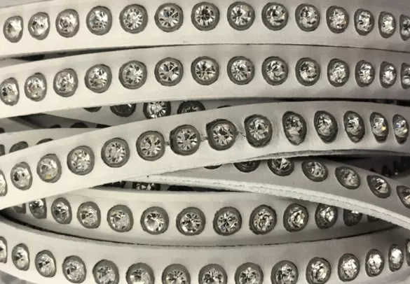 Cuir de veau avec strass de Swarovski 5mm.