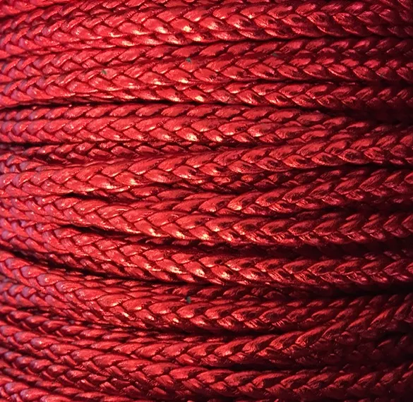Cuir d'agneau tressé 3mm-qualité joallerie-NOUVELLES COULEURS - Rouge métallisé