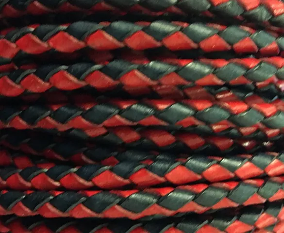 Cuir tressé scoubidou 5mm en bi colore - rouge et noir