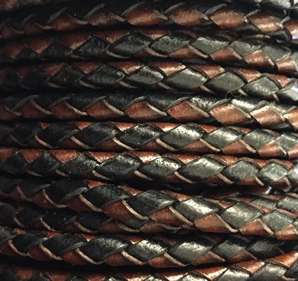 Cuir tressé scoubidou 5mm en bi colore - marron et noir