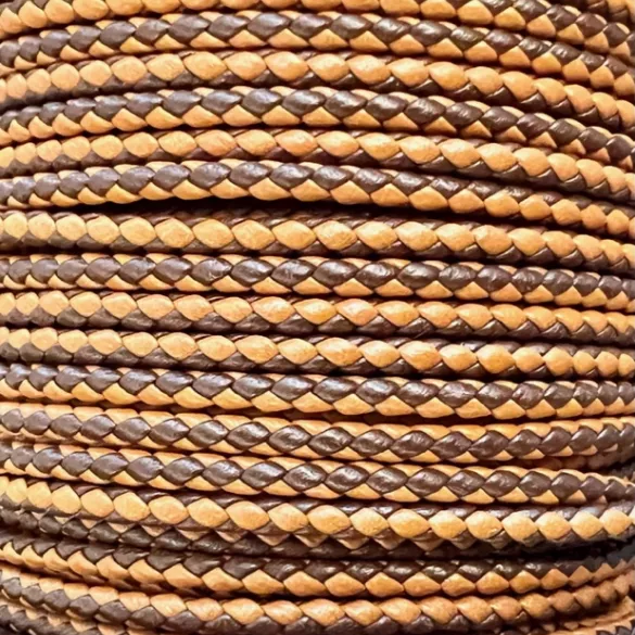 Cuir tressé rond 3mm en bicolore-nouvelles couleurs - camel et marron foncé