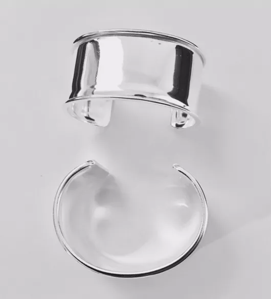 Pièce en zamac plaqué argent avec ou sans motif , formant la moitié d'un bijou - soit un bracelet soit un collier soit une bague.