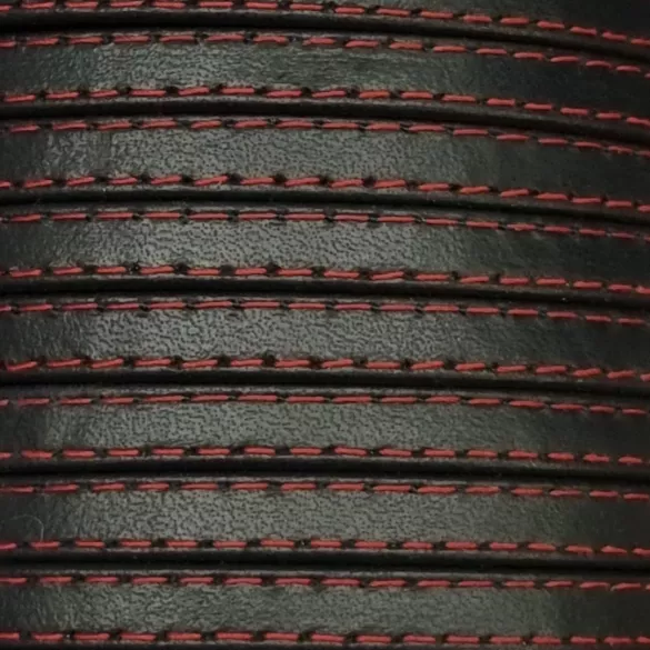 Cuir de chevre double couture 5mm souple couture couleur différente - Bleu marine couture rouge