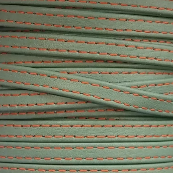 Cuir de chevre double couture 5mm souple couture couleur différente - Vert d'eau couture orange