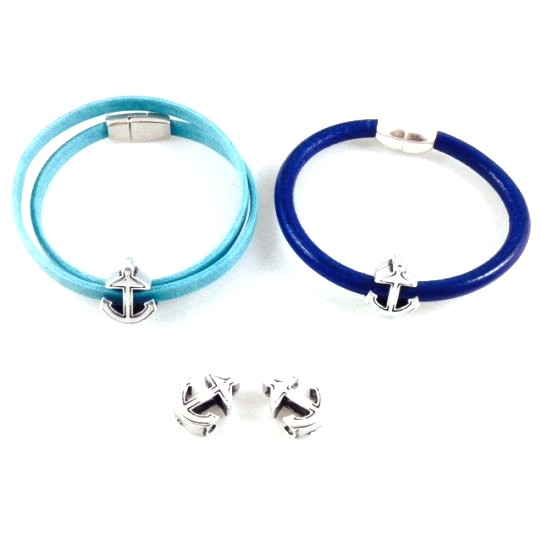 Passing anchor leather 5 mm round or flat, in zinc alloy plated argent.