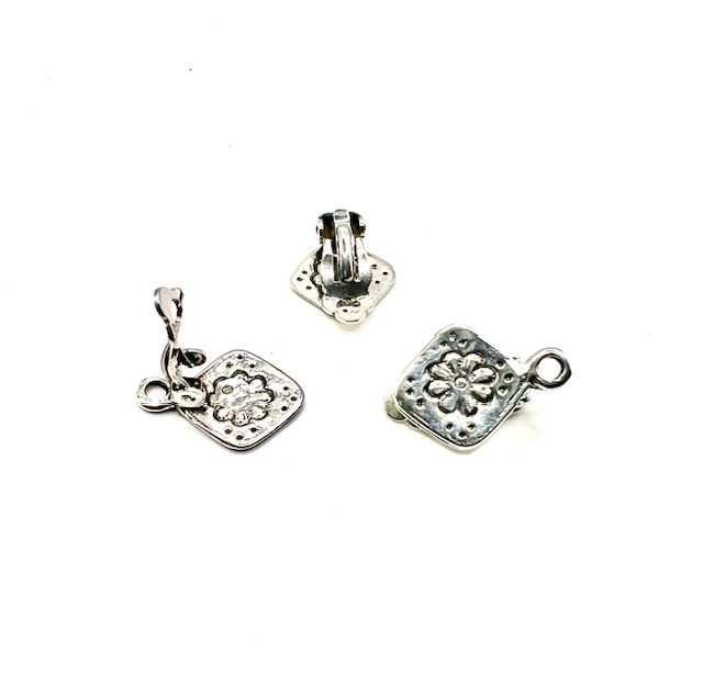 Boucles d'oreilles à Clips, en ETAIN plaqués argent antique 10 microns Fabrication Française.