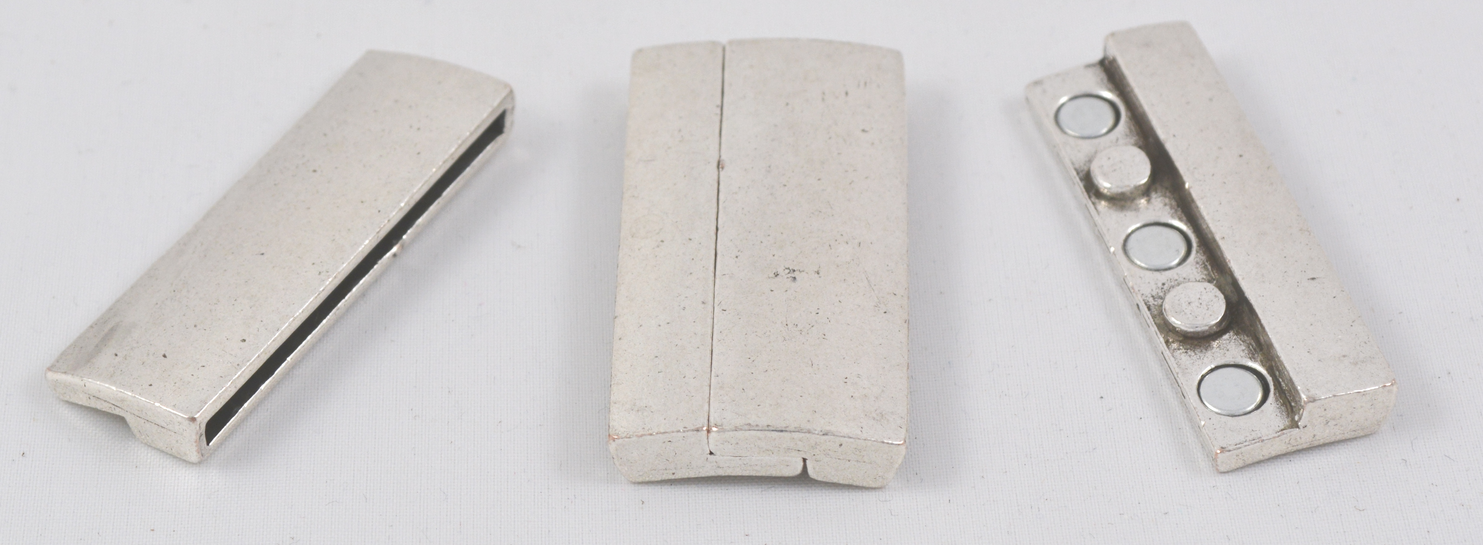 Magnetic pewter clasp silver plated for leathers multi-rank of 37mm.