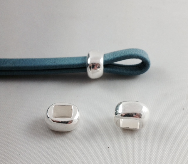 Passant pour doubler cuir 5mm plat, en zamac plaqué argent.