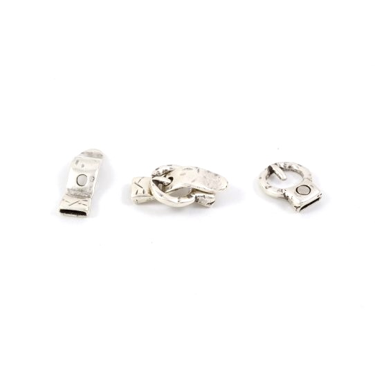 Fermoir aimanté en zamac en boucle de ceinture martelé, plaqué argent pour cuir 10mm.