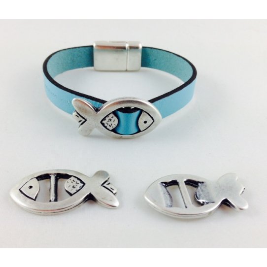 Passant poissoin pour cuir 10mm en zamac plaqué argent.