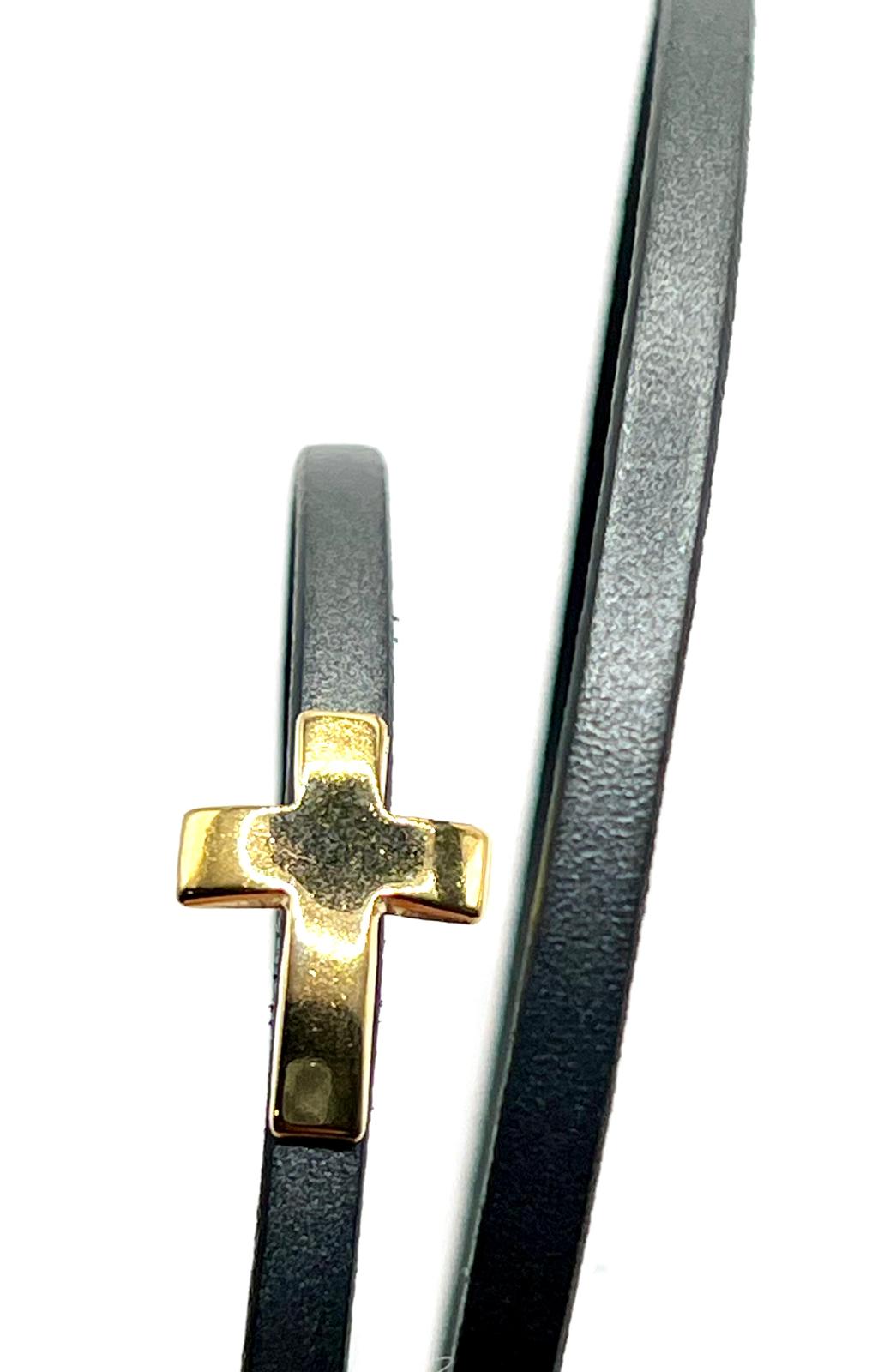 Passant croix pour cuir 5mm plat, en zamac plaqué argent.