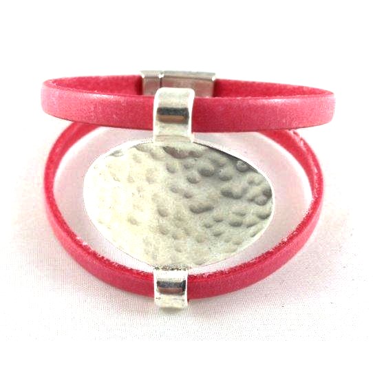 Oval loop for round leather 5mm in zamac, sharp silver plated :