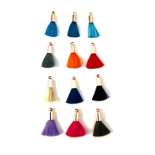 Pompon fils avec embout en laiton plaqué or rose.