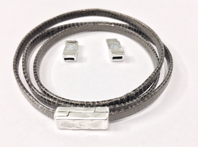 Fermoir aimanté 5mm martelé, en zamac, plaqué argent.