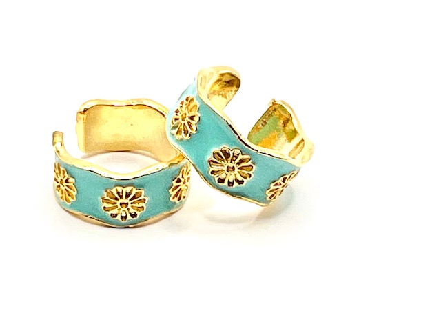 Bague en laiton doré à l'or fin et émaillé, ajustable