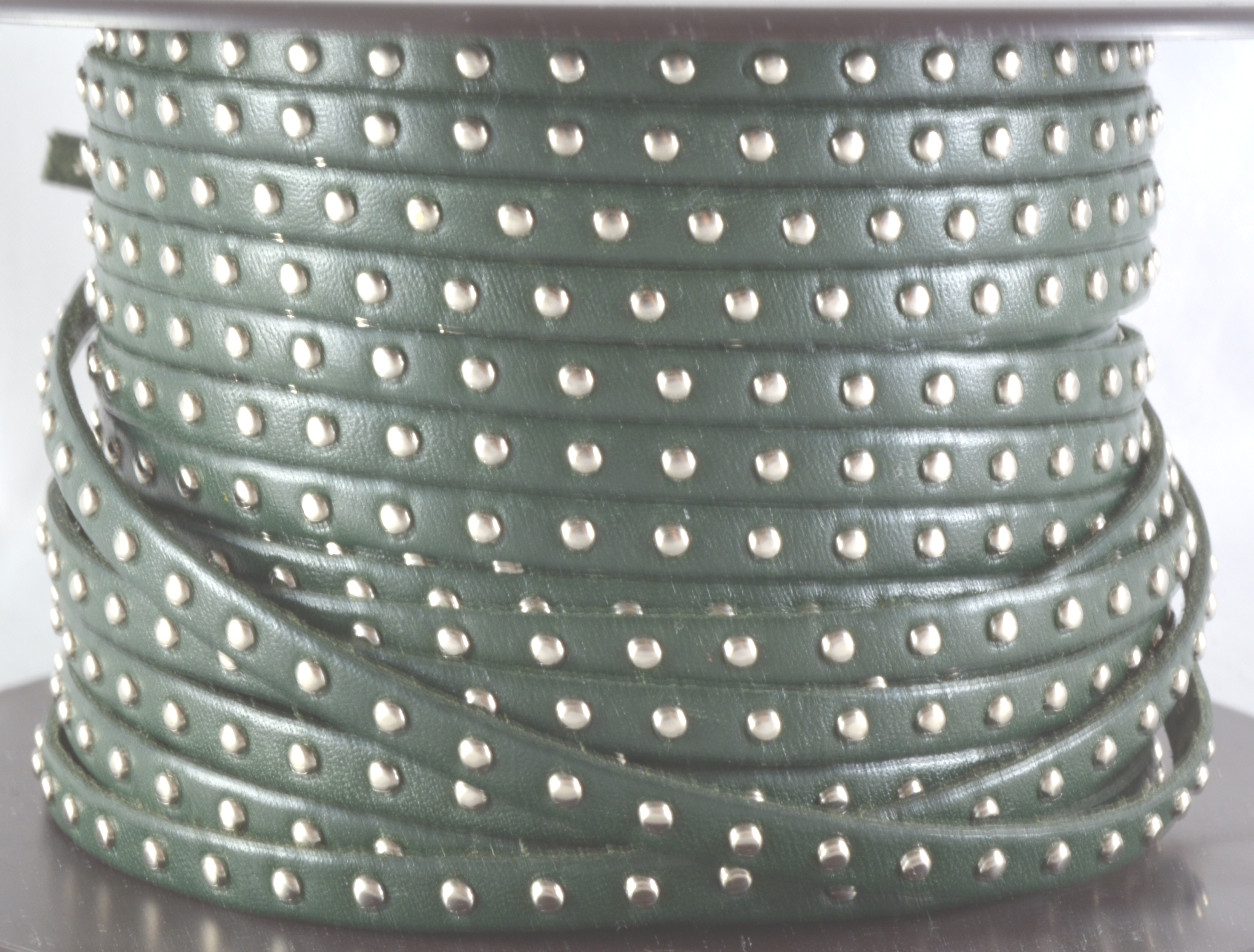 Cuir  de Veau 5mm clouté laiton à la main, d'où le prix elevé.