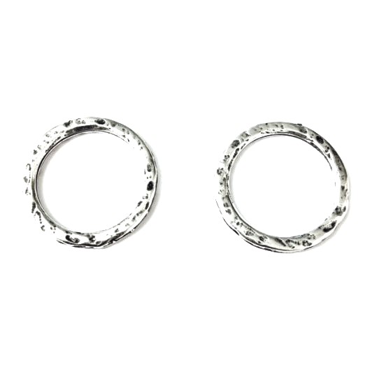 Cercle plat martelé double face, en zamac plaqué argent vieilli ou argent vif