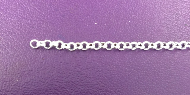 Chaine jaseron, en laiton de petite dimension; plaquée argent vif 10 microns en France.