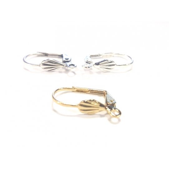 Dormeuses avec coquillage en laiton plaqué argent antique, argent vif 10 microns ou doré 1 micron .