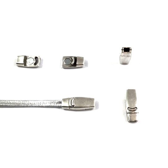 Fermoir aimanté pour cuir plat 3mm avec sécurité, en étain plaqué argent.existe aussi en placage Or Rose