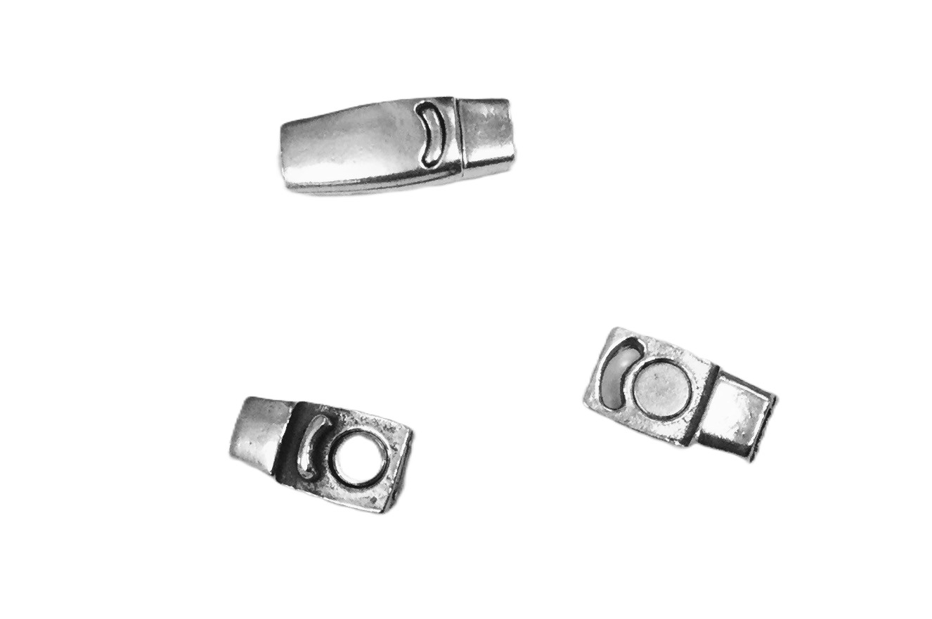 Fermoir aimanté pour cuir plat 3mm avec sécurité, en étain plaqué argent.existe aussi en placage Or Rose