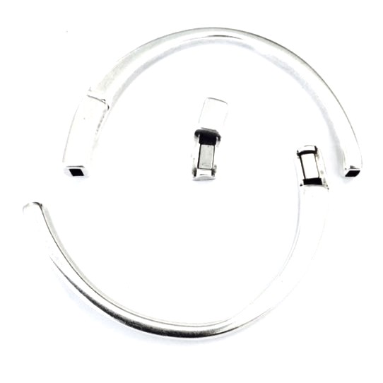 Fermoir aimanté demi-jonc pour cuir plat 3mm, en zamac plaqué argent.