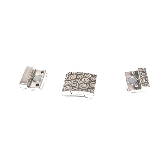 Fermoir aimanté en étain plaqué argent pour cuir 15mm, avec motif spirale. Existe aussi en plaqué Or Rose