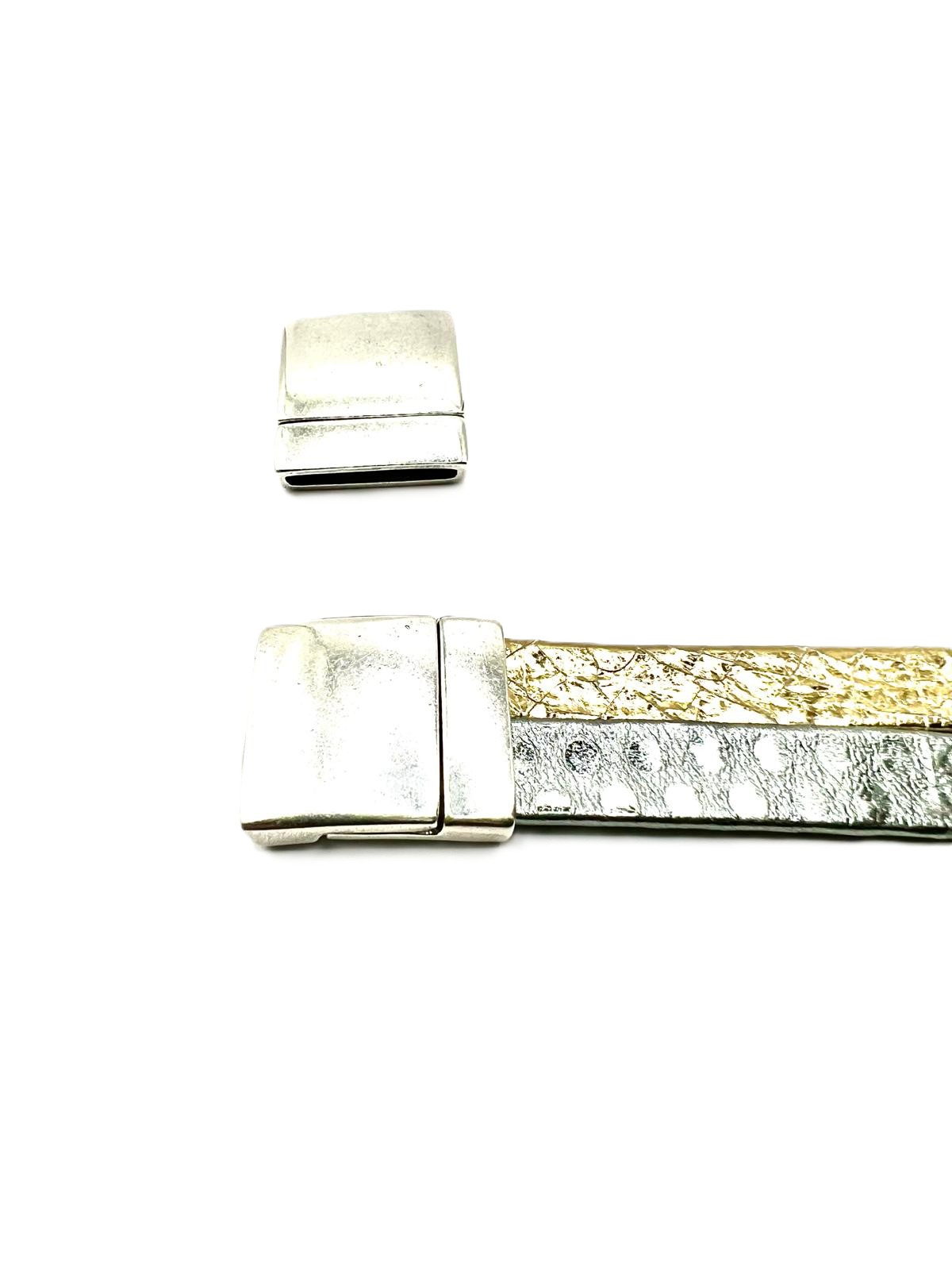 Fermoir aimanté en étain pour cuir 20mm, plaqué argent .