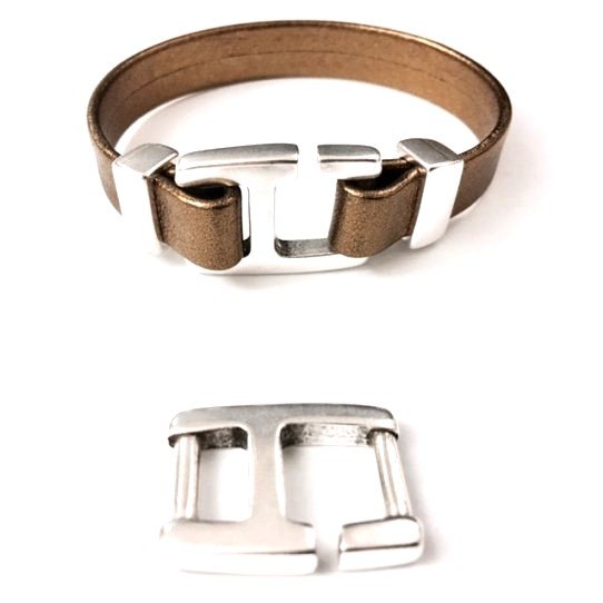 Fermoir aimanté en étain pour cuir 20mm plaqué argent.