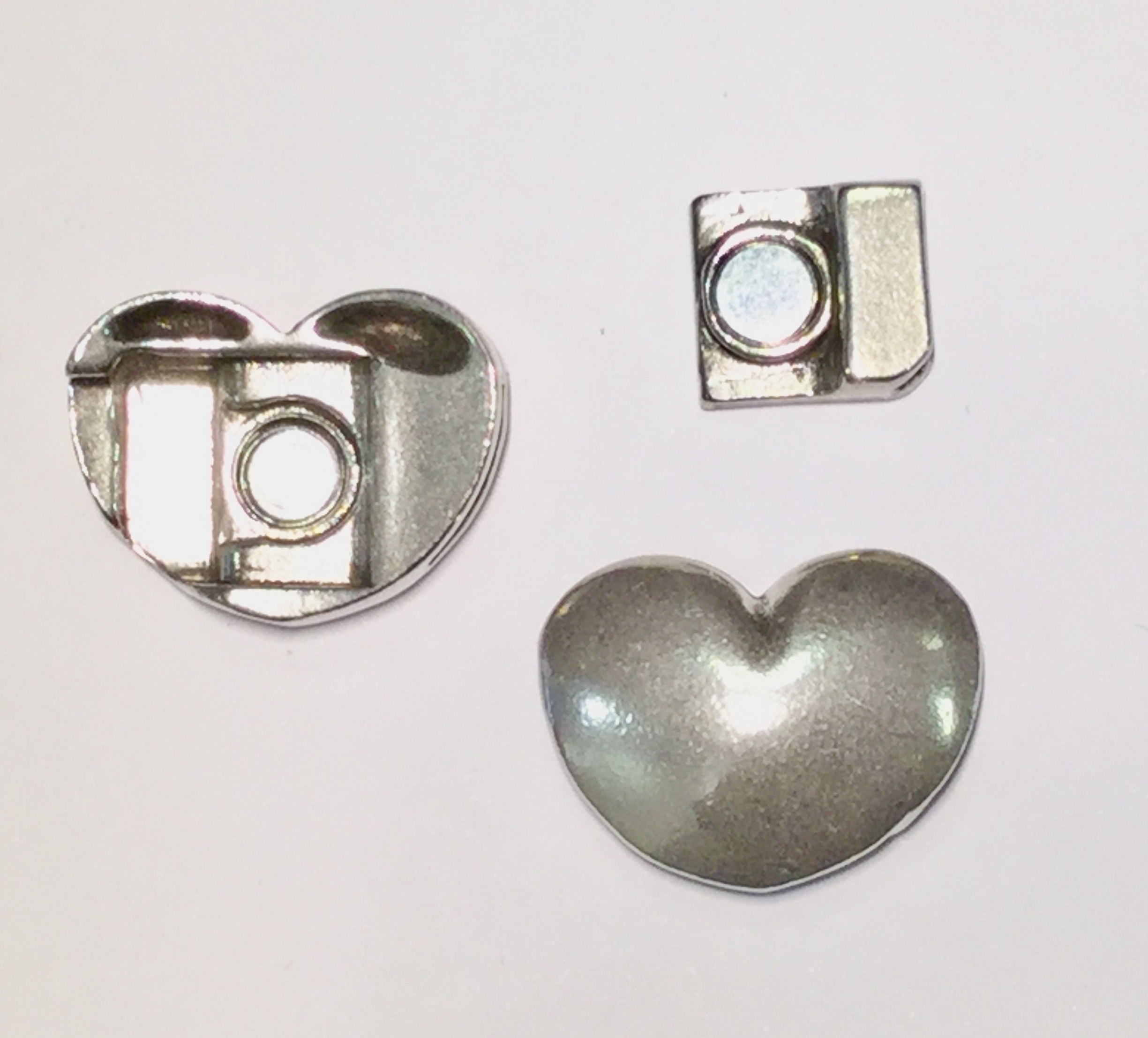 Fermoir aimanté en étain en forme de coeur lisse pour cuir 10mm, plaqué argent.