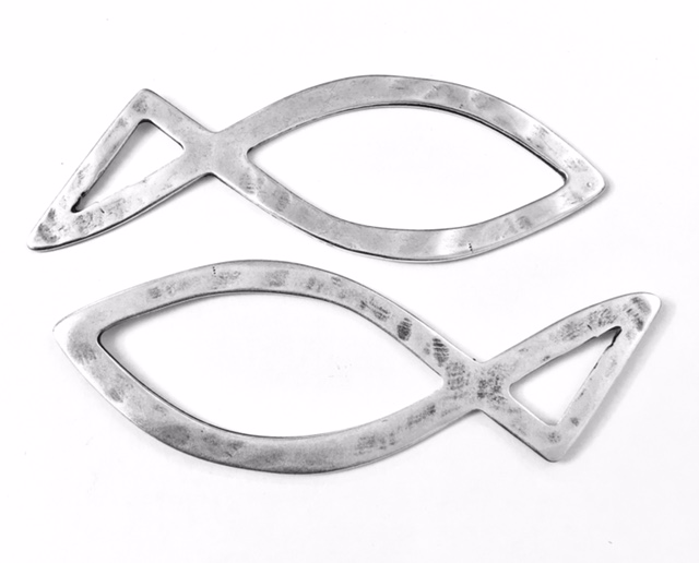 Grand poisson stylisé pendant ou intercalaire, en zamac plaqué argent.