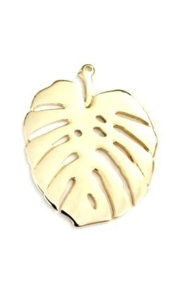Grand feuille de Monstera en pendant pour faire des sautoirs, en zamac plaqué argent ou or.