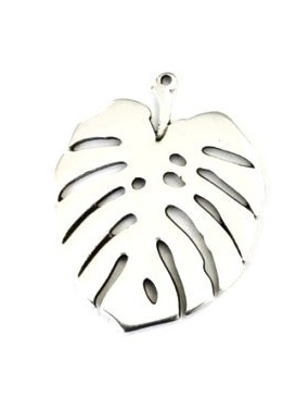 Grand feuille de Monstera en pendant pour faire des sautoirs, en zamac plaqué argent ou or.