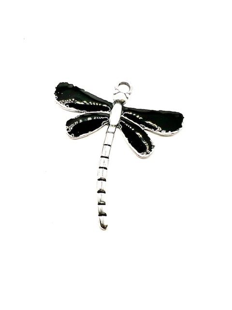 Pendant Grande libellule en zamac plaqué argent antique,émaillé.