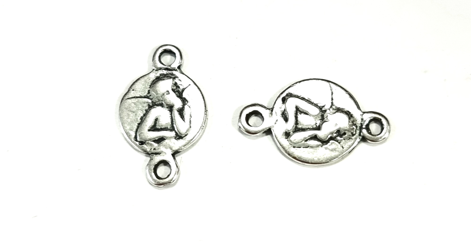 Intercalaire médaillon avec ange, en zamac plaqué argent antique.