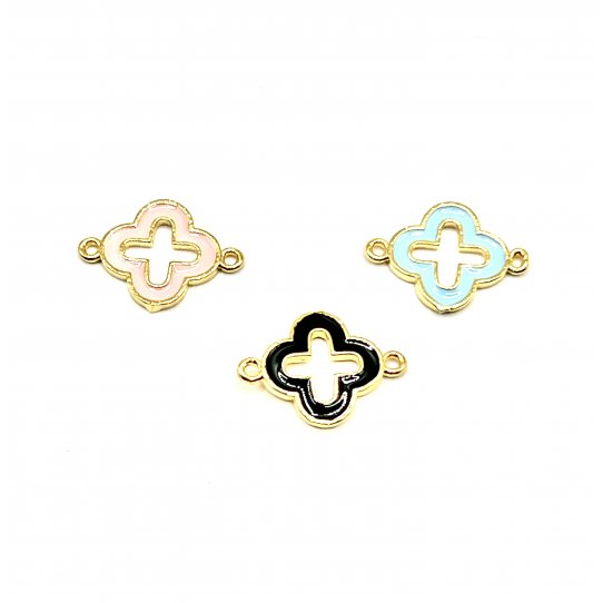 Intercalaire -connecteur en laiton doré émaille en forme de trèfle à quatre feuille