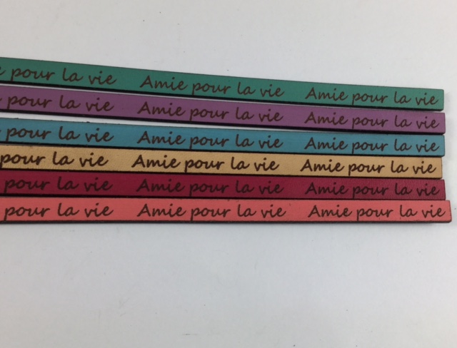Lanière de cuir  de veau de 59 cm avec écriture Laser, "Amie pour la vie"