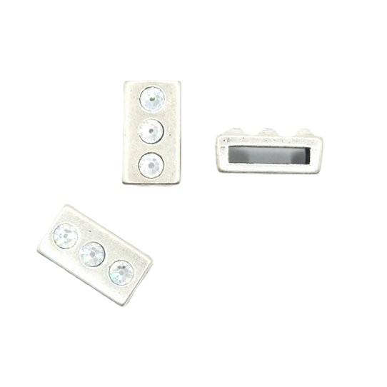 Silver plated Zamak loop for leather 13mm with 3 rhinestones Swarovski.