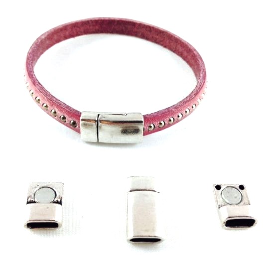 Magnetic clasp tin plated argent.Excellente qualite.Dim ext: 16.60 x 8.70mm Sun slit: 6.70 x 3.10Recommandé for hides: ball leather or leather swarovski