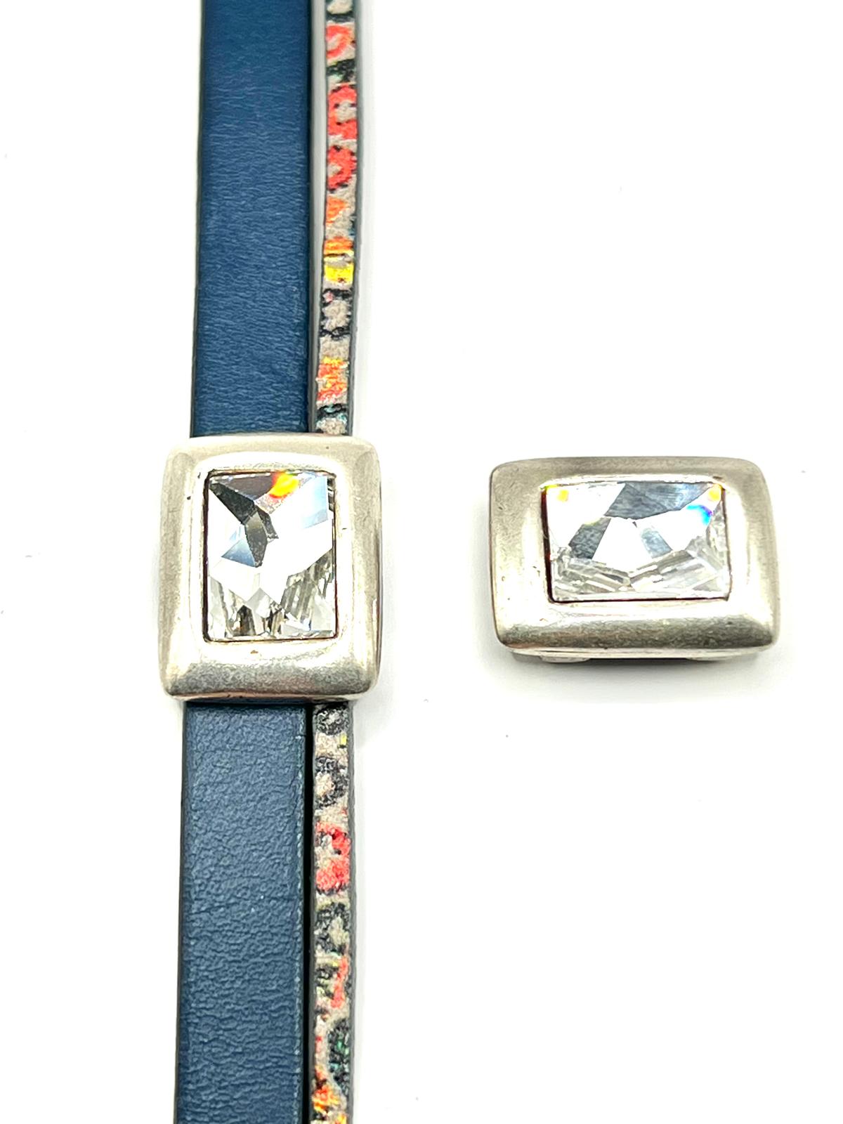 Passant pour cuir 13mm en zamac avec un grand swarovski rectangle.