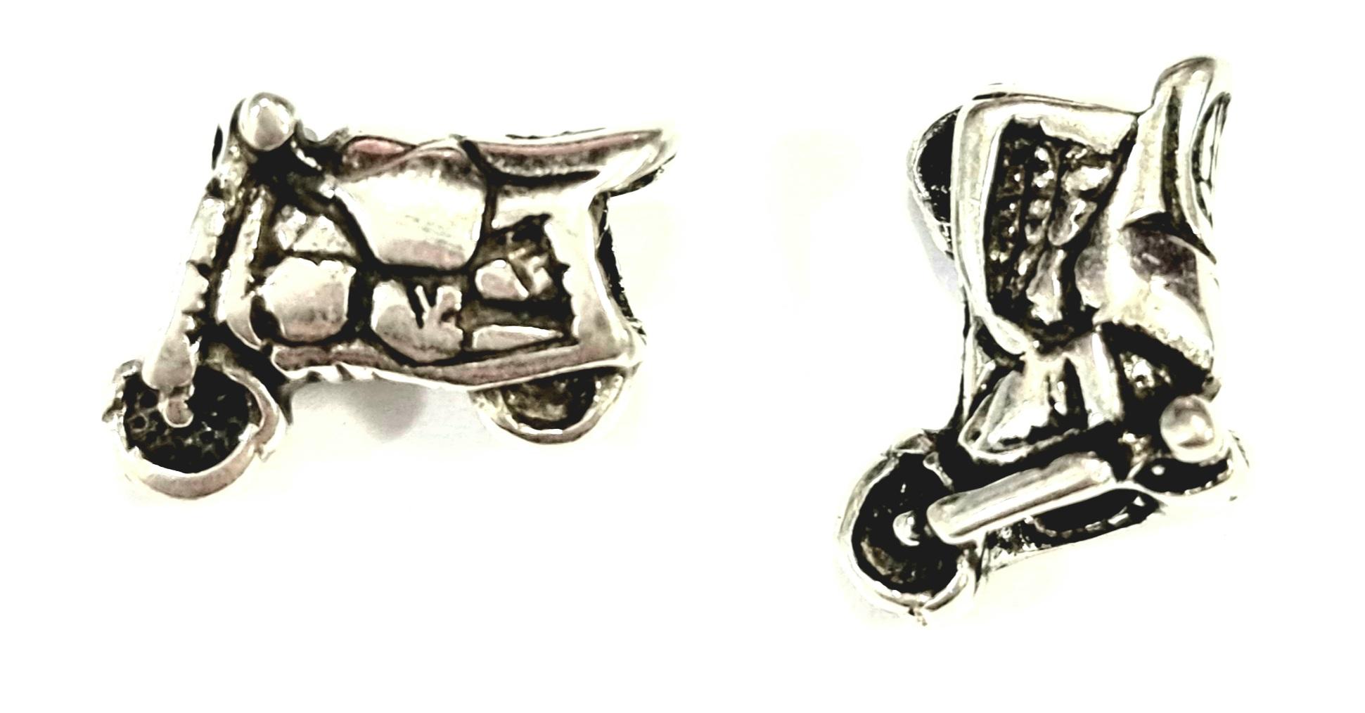 Passant moto pour cuir rond 4.5mm, en zamac plaqué argent antique.