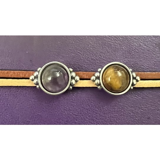 > Passant oeil de tigre ou amethyste pour cuir 6mm