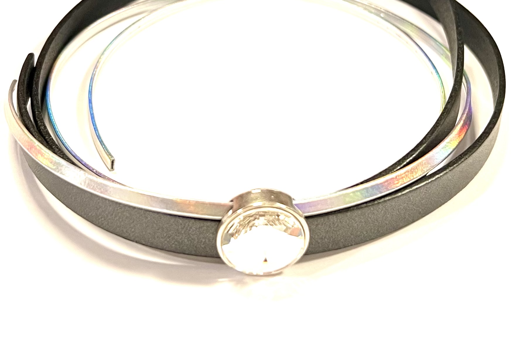 Passant 13mm pour cuir avec un grand Swarovski rond.