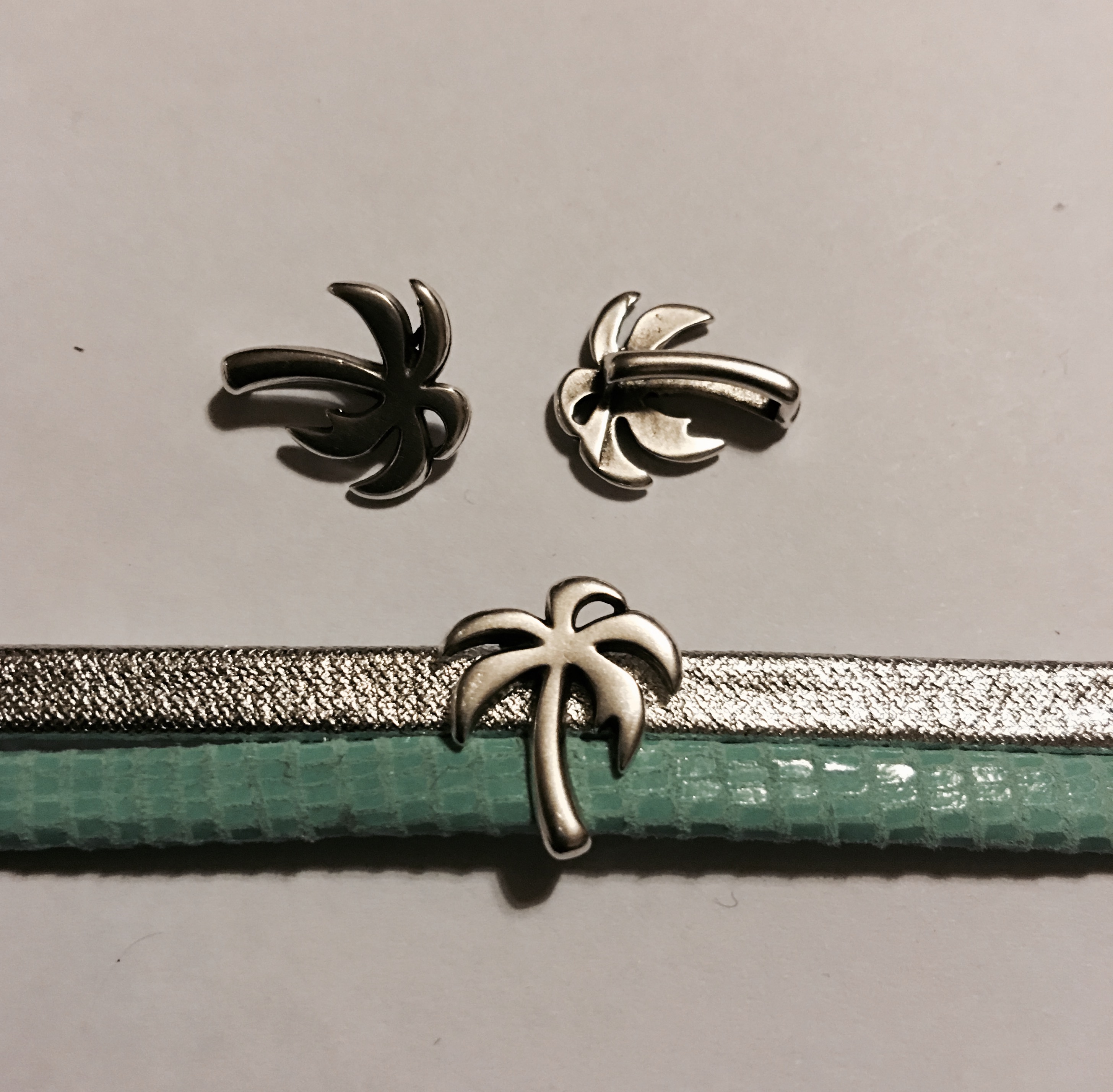 Passant palmier pour 10mm en Zamac plaqué argent.