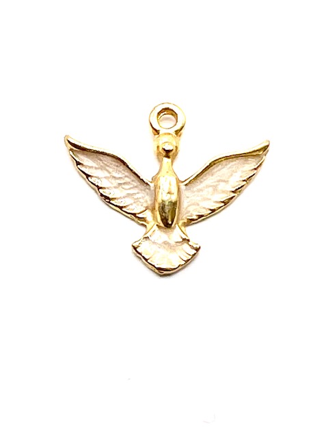Pendant en zamac plaqué à l'or fin de l'oiseau phénix, créature mythologique qui renaît de ses cendres. Symbole du feu, de la vie et de la réincarnation.