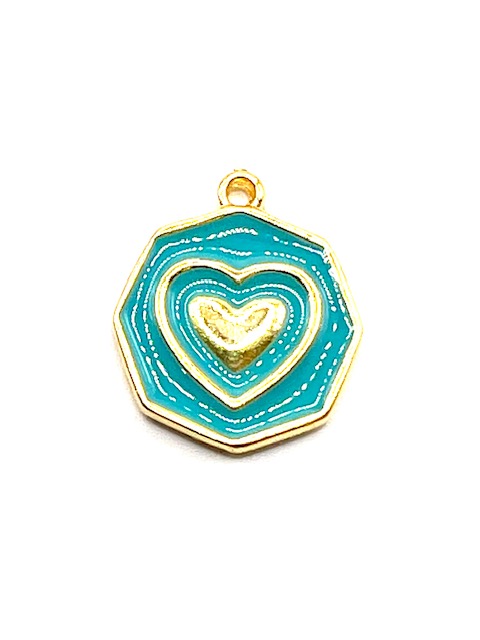 > Pendant médaille hexagonale coeur en laiton émaillé