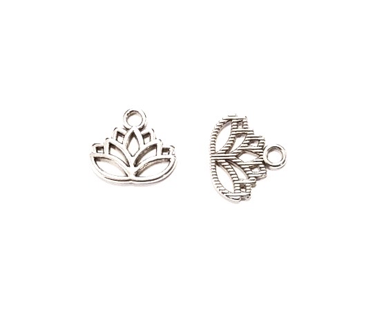 Pendant petit lotus lisse recto et strié au verso, en zamac plaqué argent antique ou doré à l'or fin.