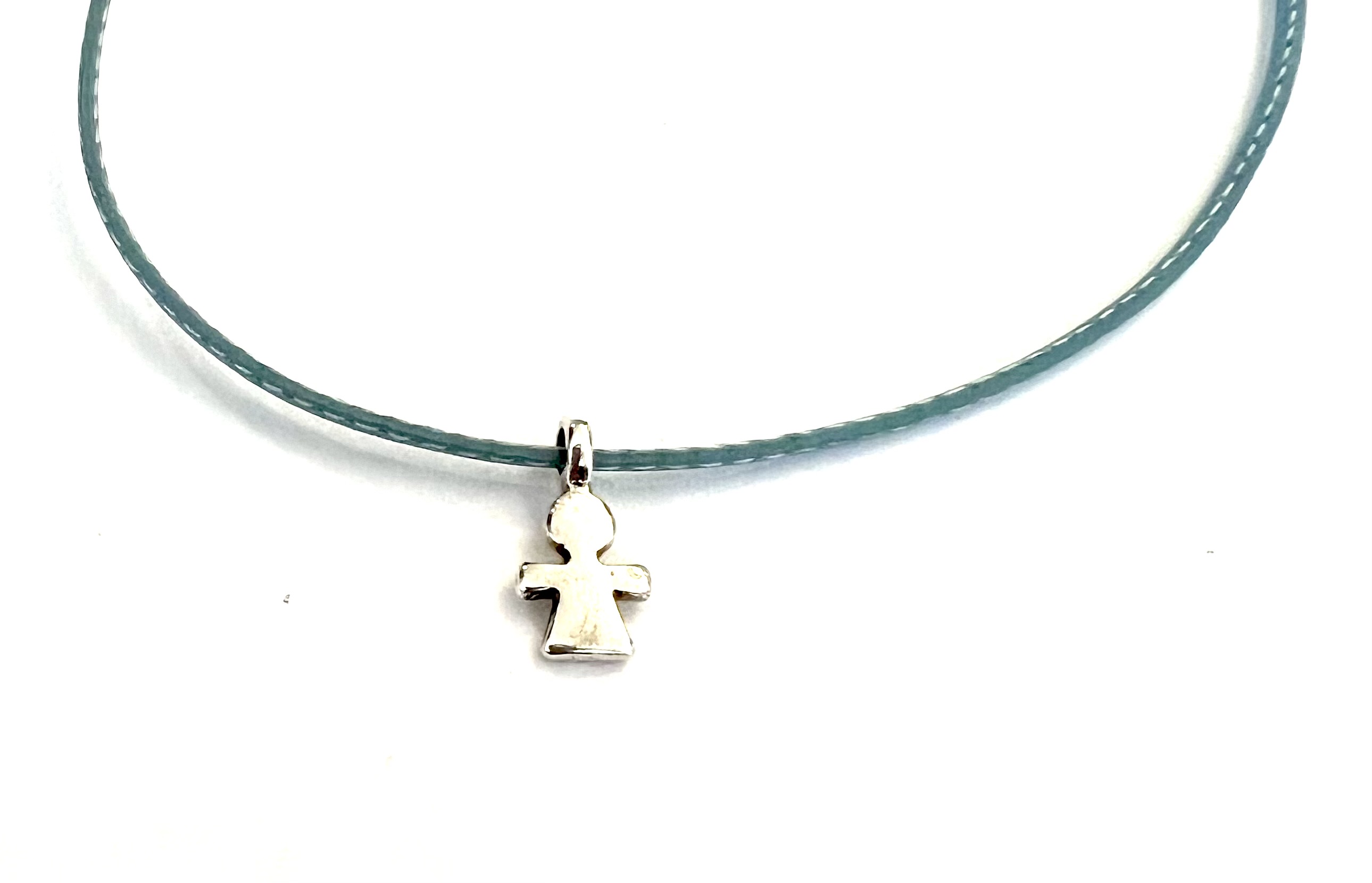 Pendant petite fille en zamac plaqué argent antique en France.
